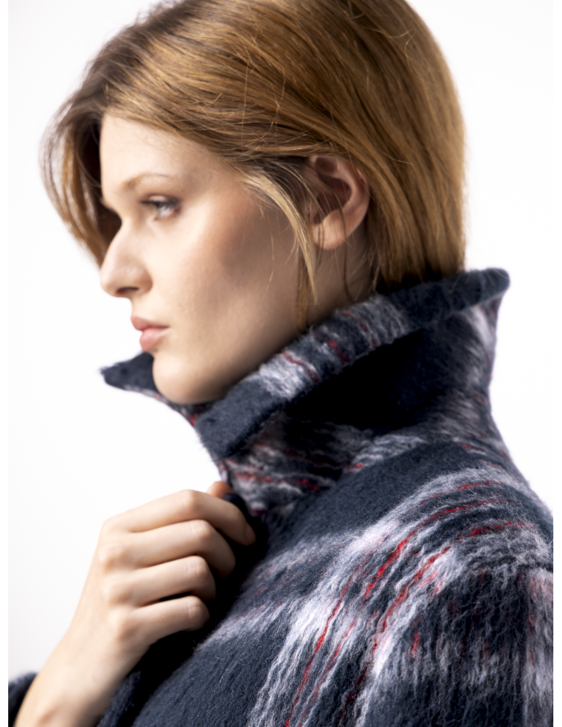 Its oversized cut without shoulder pads offers ease and comfort, while trench-inspired details wide tailored collar, double-breasted fastening, and buttoned cuff straps ,create a feminine yet confident style.