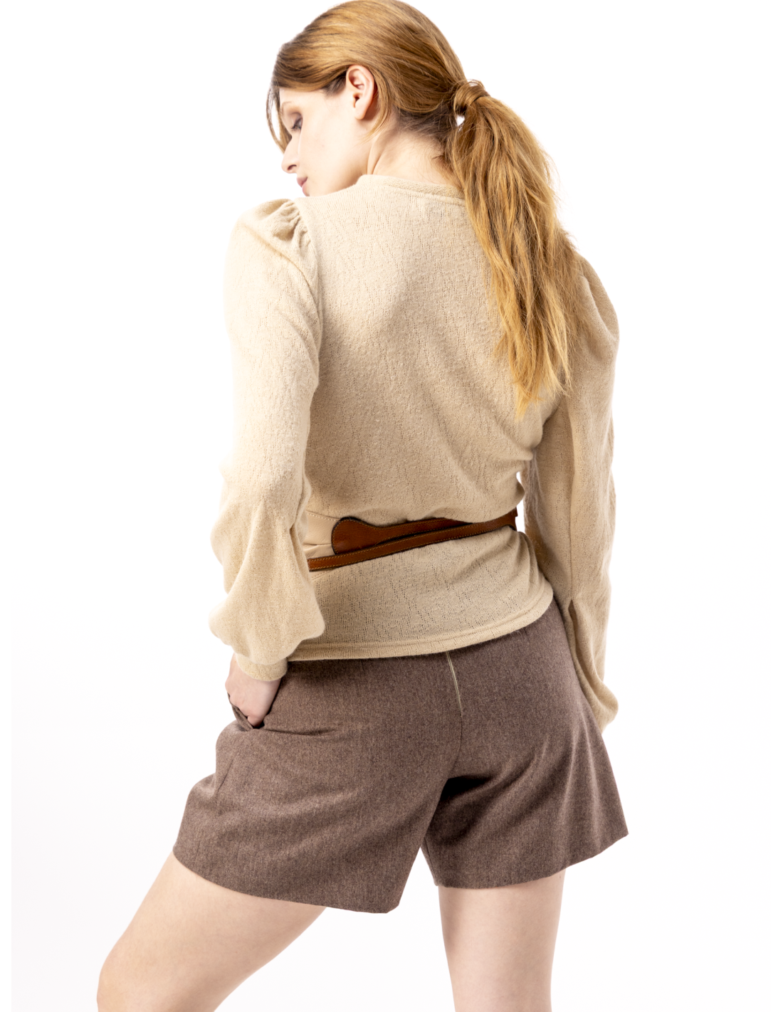 The Angel openwork pure wool sweater stands out with its timeless line, natural drape, and elegant beige hue. Light, warm, and refined, it can be worn on its own or layered, making it an essential piece of the seasonal wardrobe.