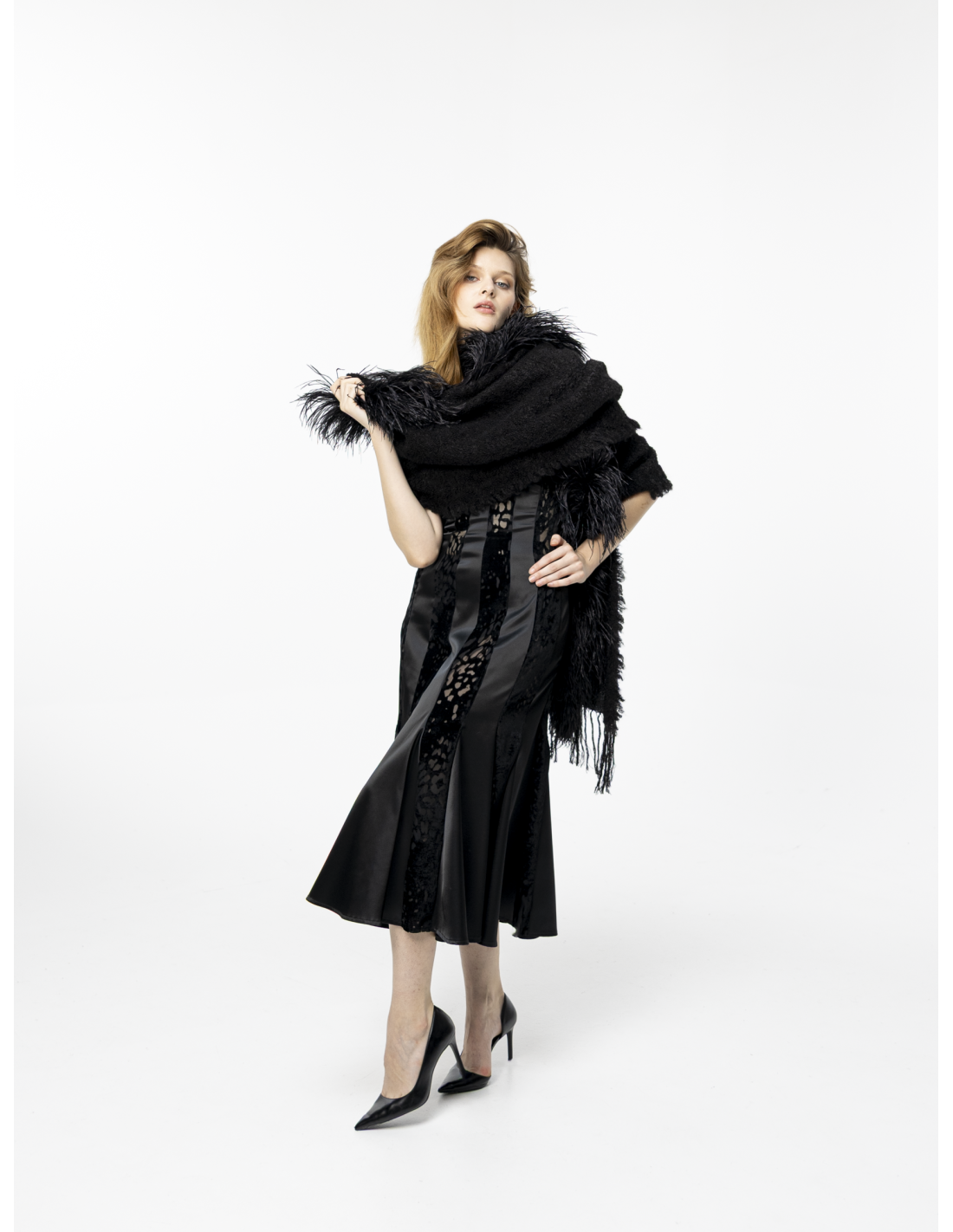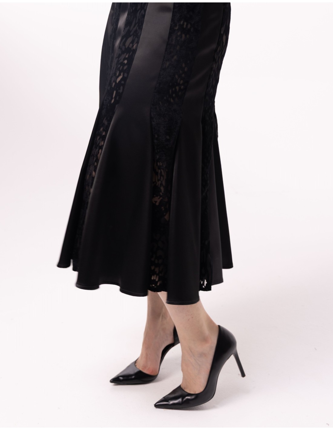 ● Black strappy mermaid dress in devoré velvet combined with satin