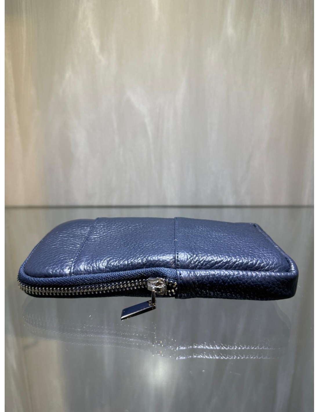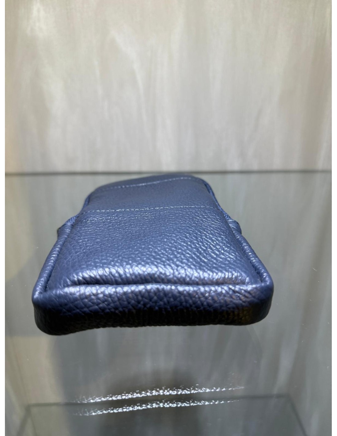 Green or blue grained leather phone bag