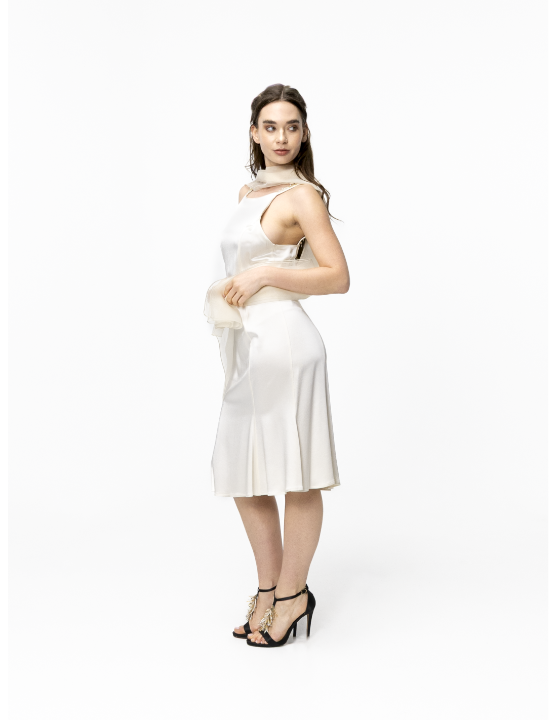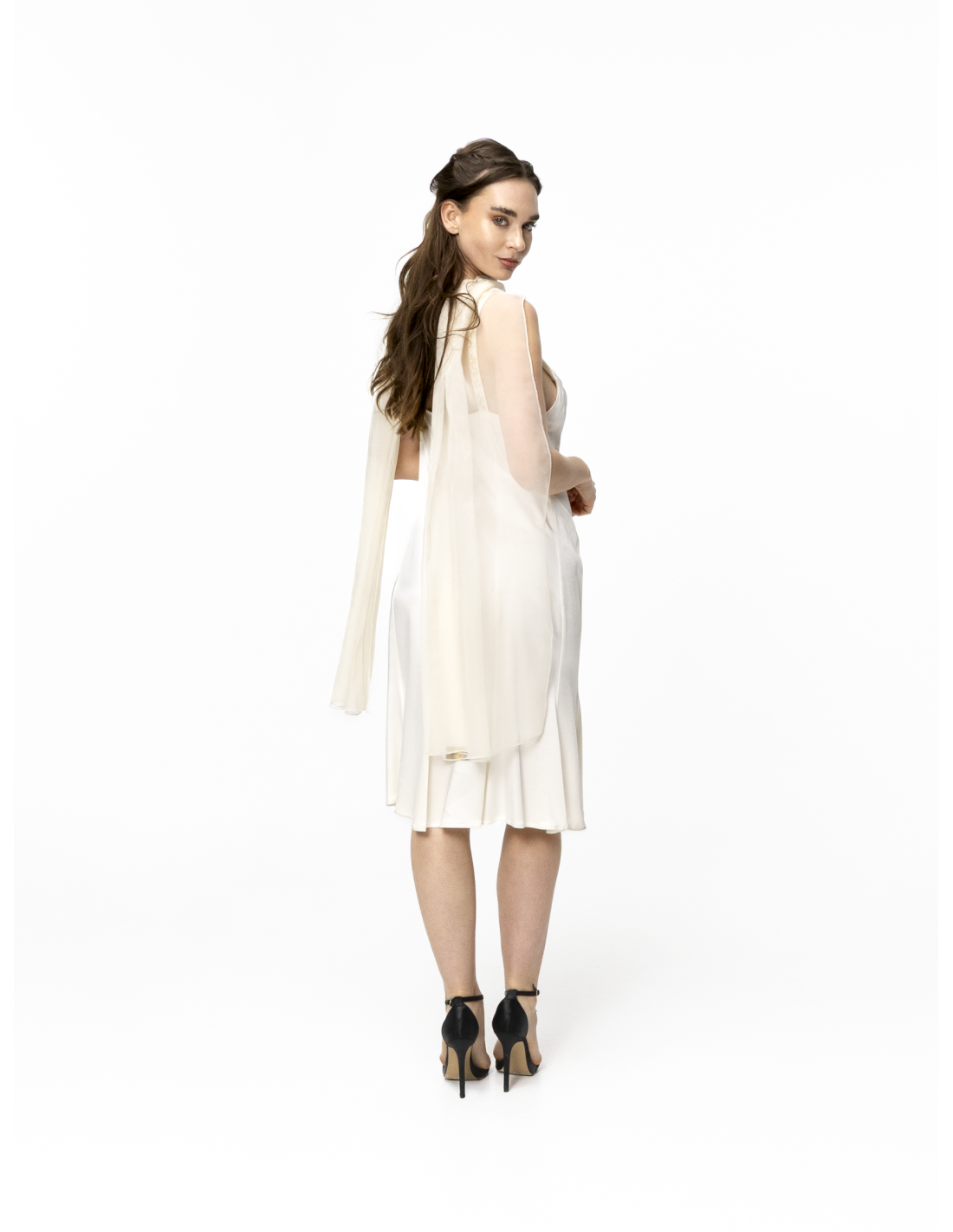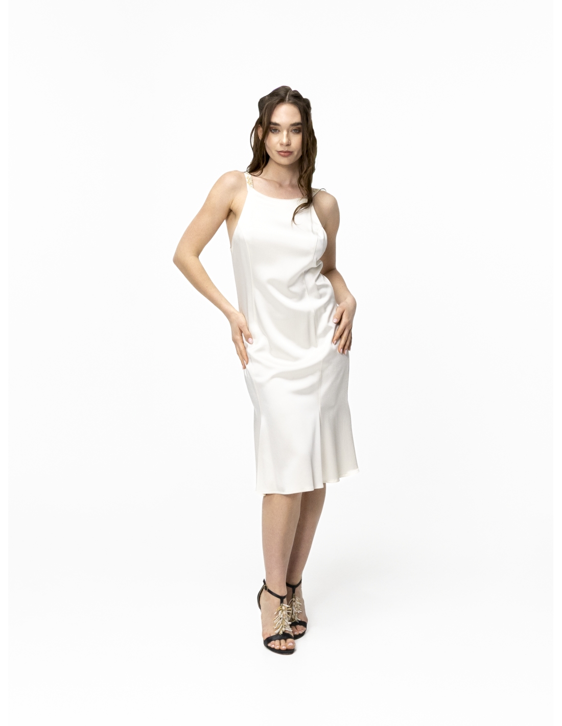 The Valérie white dress plays with light thanks to its stretch silk satin fabric, which flatters the figure.