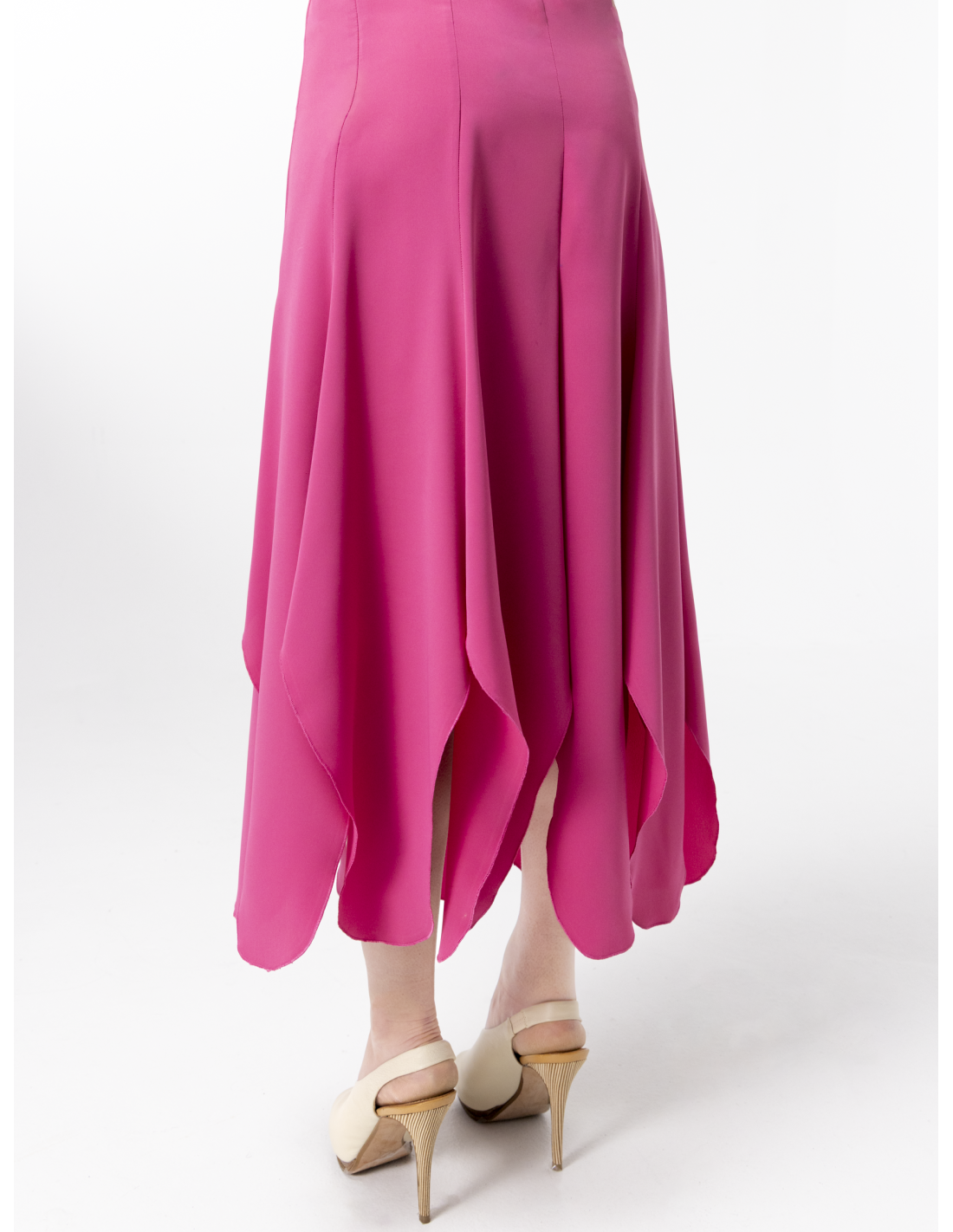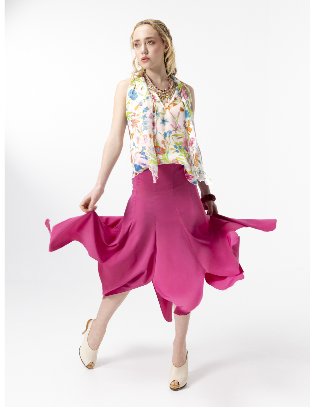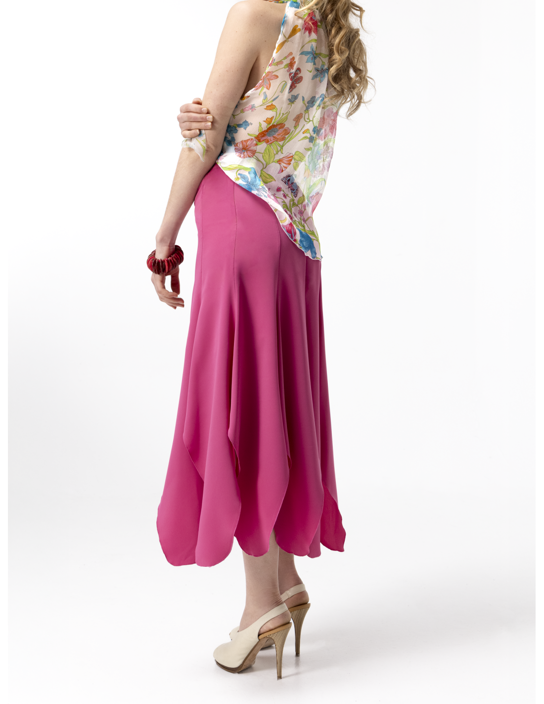 This flowing long skirt in rose panels enchants with its airy movement and delicate lightness.