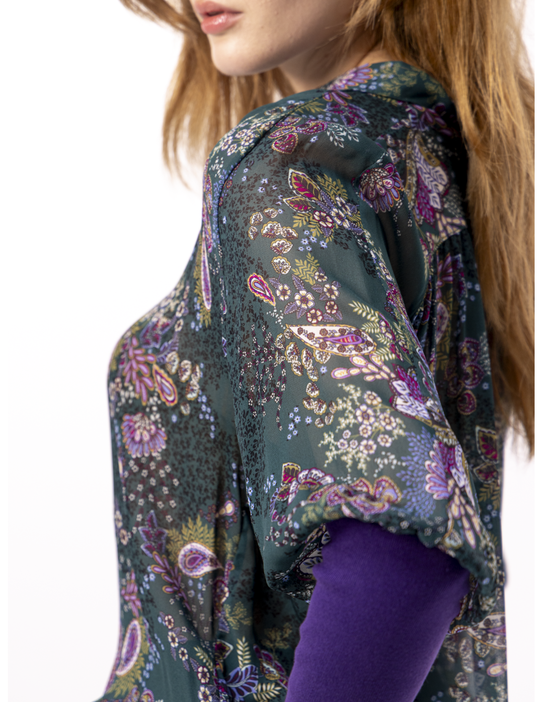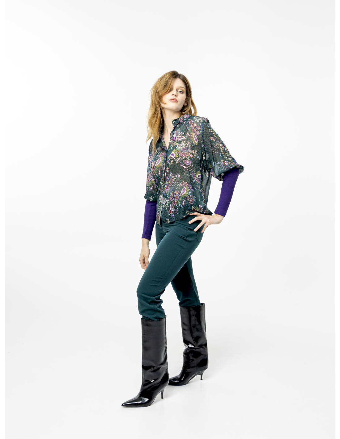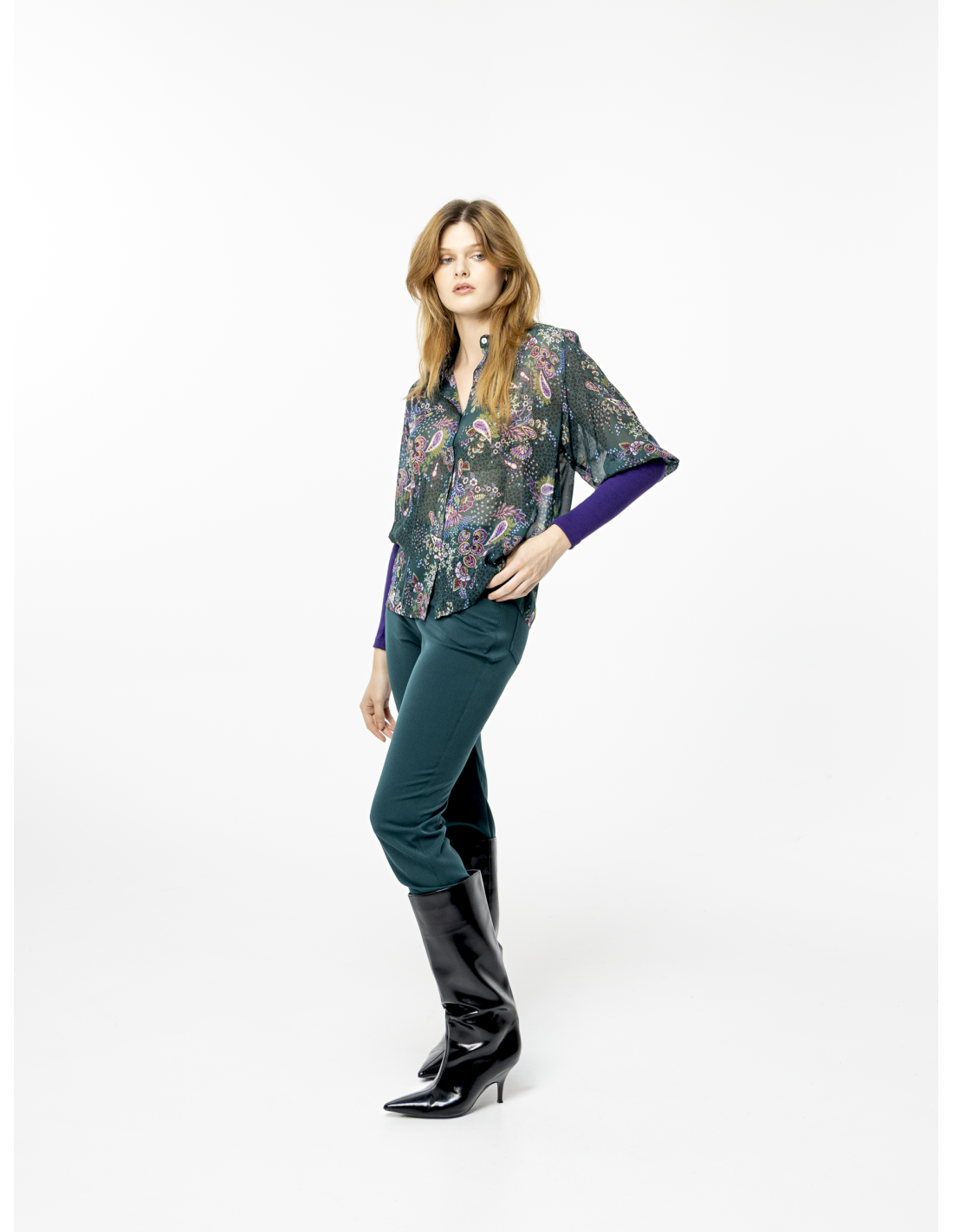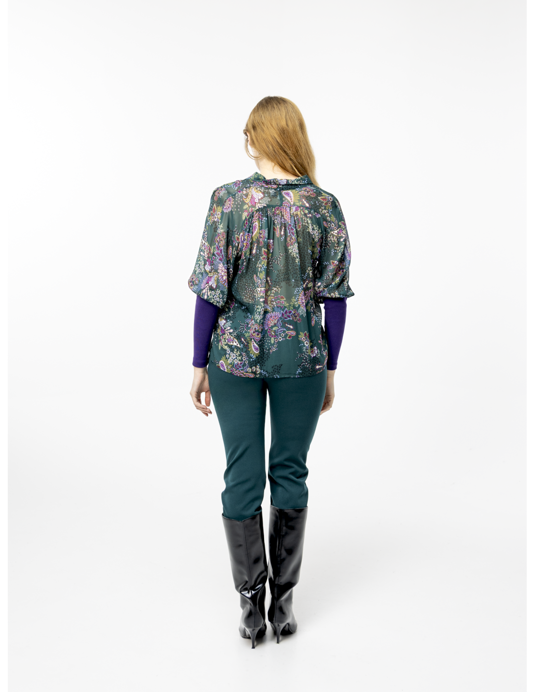 Cashmere pattern blouse in duck green georgette crepe