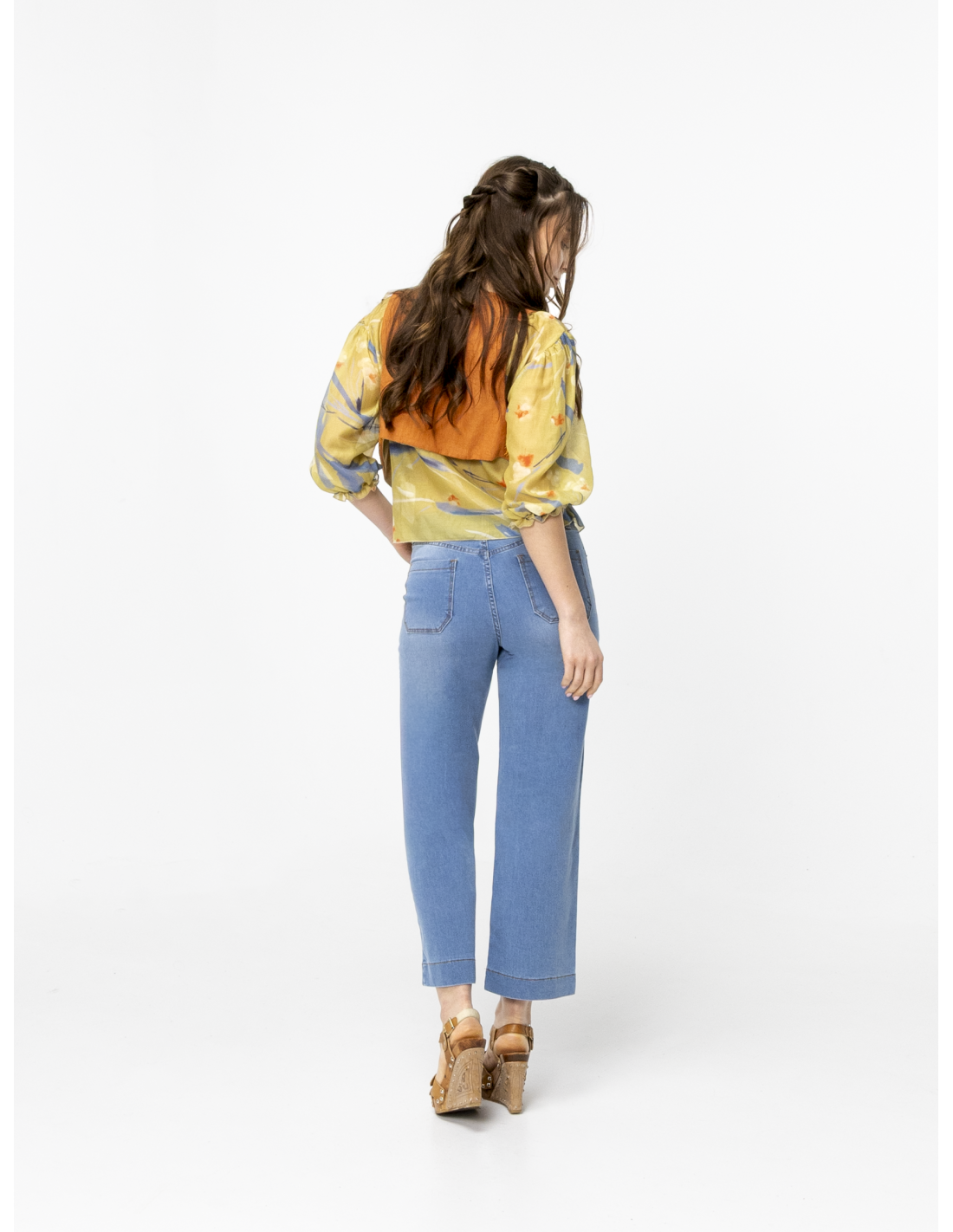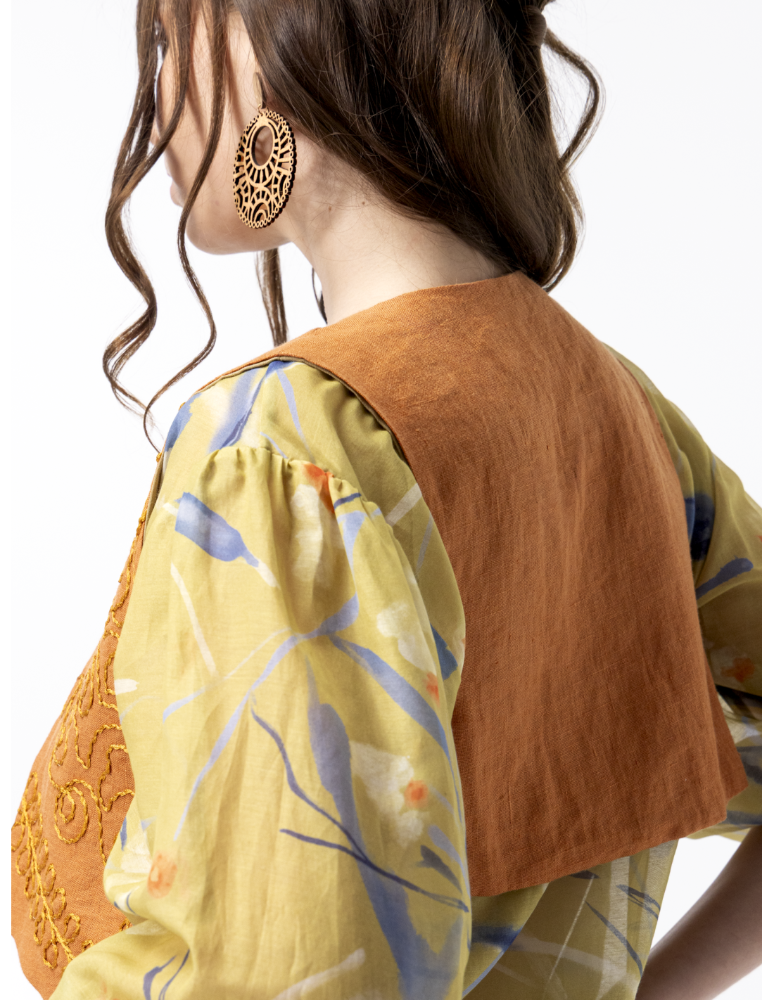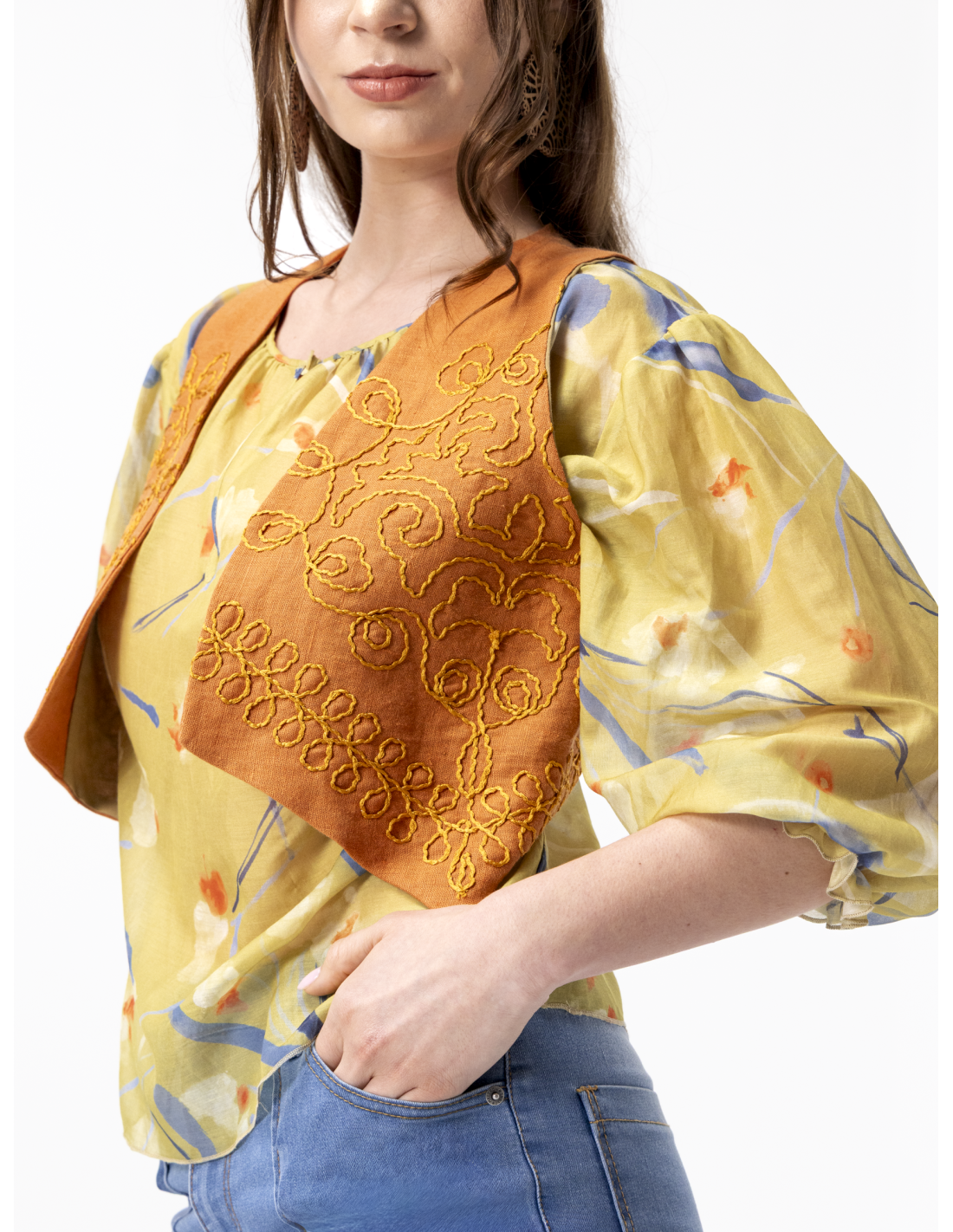 - Gilet court en lin brodé orange